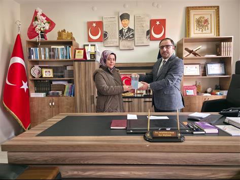 İlçe Müftülüğümüze bağlı Halife Yusuf 4-6 yaş Kur'an Kursu öğreticisi Şermin Coşan, Van/İpekyolu'na atanması vesilesiyle İlçe Müftümüz İsa Demirkaynak'ı ziyaret ederek Müftülük personeline veda etti.