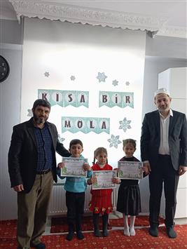 Mevlana Camii Kursu'nda eğitim gören 4-6 yaş grubu öğrenciler, yarıyıl döneminin sonunda karnelerini Müftümüz İsa Demirkaynak'ın elinden alarak büyük sevinç yaşadı.