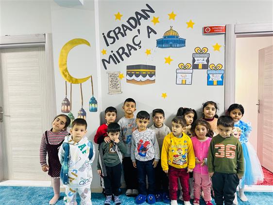 İlçe Müftülüğümüz bünyesinde eğitim veren İsra Miraç 4-6 Yaş Kur'an Kursu'nda, minik öğrencilerin Miraç Kandili’ni sevgi ve heyecanla karşılaması amacıyla özel bir etkinlik düzenlendi. Kurs öğreticilerinin rehberliğinde gerçekleştirilen programda, minik kalplere Miraç mucizesi yaş gruplarına uygun pedagojik bir dille anlatıldı. Ellerini semaya açan minikler, vatanımız, milletimiz ve aileleri için saf ve masum duygularıyla dualar ederek bu mübarek gecenin manevi iklimine ilk adımlarını attılar.