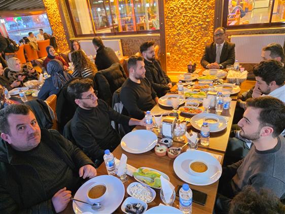 Ramazan ayının manevi iklimini radyo dalgalarıyla evlere ve gönüllere taşıyan, Radyo Doğubayazıt frekanslarında mukabele geleneğimizi büyük bir özveriyle sürdüren kıymetli din görevlilerimiz, İlçe Müftümüz İsa Demirkaynak’ın katıldığı iftar programında bir araya geldi. Müftülüğümüzce, sesleriyle binlerce kişiye ulaşan hocalarımızın motivasyonlarını artırmak ve sundukları bu değerli hizmete bir vefa nişanesi göstermek amacıyla gerçekleştirilen buluşmada, İlçe Müftümüz Demirkaynak hocalarımıza teşekkür ederek Ramazan’ın bereketini aynı sofrada paylaştı. Mikrofon başındaki emeklerini kardeşlik sofrasına taşıyan görevlilerimize, bu kadim geleneği yaşattıkları için şükranlarımızı sunuyor; birliğimizin ve beraberliğimizin daim olmasını diliyoruz.