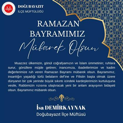 "Muazzez ülkemizin, gönül coğrafyamızın ve İslam ümmetinin; ruhlara surur, gönüllere müjde getiren; inancımıza, ibadetlerimize ve kadim değerlerimize ruh veren Ramazan Bayramı mübarek olsun. Bayramımız, insanlığın yaşadığı türlü belaların def’ine ve Filistin başta olmak üzere dünyanın bir çok yerinde büyük sıkıntı içindeki kardeşlerimizin kurtuluşuna vesile, Rabbimizin rızısına ulaştıracak yeni bir anlam arayışının bidayeti olsun. Bayramınız mübarek olsun."
