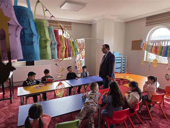 İlçe Müftümüz Sayın İsa Demirkaynak, İsra Mirac Kur'an Kursu’nu ziyaret ederek eğitim gören minik öğrencilerimizle bir araya geldi. Çocukların eğitim heyecanına ortak olan Müftümüz, her bir öğrenciyle yakından ilgilenerek onlara moral verdi ve öğrenme süreçlerindeki mutluluklarını paylaştı.